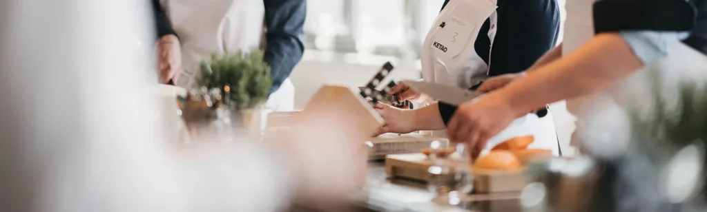Lockeres Ambiente, motivierende Musik und eine professionelle Messerschulung machen den Freestyle-Kochkurs zu einem besonderen Erlebnis. Zum Abschluss gibt es eine KETAO-Rezeptmappe – für noch mehr Inspiration zu Hause.