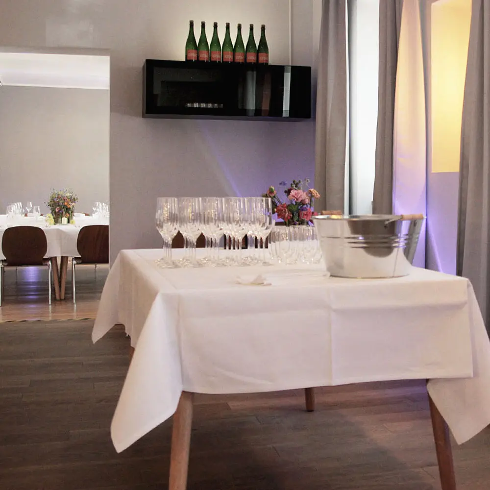 KETAO ELIAS befindet sich im traditionsreichen Eliashof – einem Ort mit gastronomischer Vergangenheit, umgeben von Kunst und Kultur. Die Location bietet auf rund 100 m² Platz für bis zu 40 Gäste.